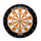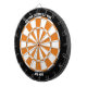 Black and orange dart board with two custom text areas. Choose "customise more" option if you want to change colours.