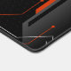 Black and orange futuristic metallic texture, cool modern geometric gaming background with green accents. Custom optional orange monogram.