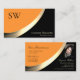 Very elegant black and orange coloured business card design with a noble shimmery gold decor.