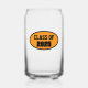 Trendy can glass for the school grad that features school colours of black and orange, with class year printed in bold, black lettering on an orange oval background with black border. Great for graduation and class reunion parties. Edit class year with your own as desired.