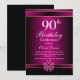 Start organising your celebration with this elegant black and pink 90th birthday party invitation.