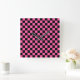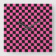 Black and pink checkerboard pattern square wall clock