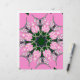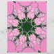 This artwork features a central, symmetrical, medallion-like design, incorporating floral and geometric elements that radiate outwards. The composition is balanced and visually engaging, drawing the eye to the intricate pattern. The background is a solid, bright pink, making the design pop.