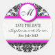 Black and Pink damask monogram wedding sticker which can be used as an invitation seal.