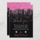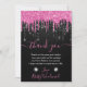 Black and Pink Dripping Glitter Sweet 16 Thank You Card