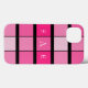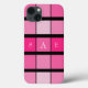 iPhone 13 Case. Black & Pink Geometric Squares. Monogram.