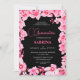 Black and pink Girly Cherry Blossom Quinceanera Invitation