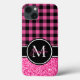 Black and Pink Glitter Buffalo Plaid Monogram Case-Mate iPhone Case