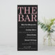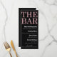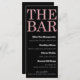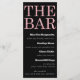 This custom bar menu features a sophisticated black and pink glitter design. The title, "The Bar" is printed at the top in a large pink glitter style font over a solid black background. A list of cocktails and drinks is printed below in white. It's perfect for any party or event.