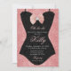 Rose Gold glitter background with black lace corset shaped artwork is a a cute way to invite your guests to a Lingerie Bridal Shower.