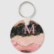 This keychain features an elegant and glamourous pink, red and black agate marble background with faux gold glitter accents. The monogram combines handwritten script and modern sans serif fonts for a classy and sophisticated look. This will make the ideal gift as it can be customised with a name and initial. The sequins and distressed texture creates the perfect blend of chic and grunge.