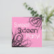 Black and Pink Swirl Sweet 16 Birthday Personalise Invitation