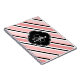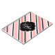Stylish and trendy tilted stripe pattern in pink and black with a navy black and white quatrefoil label frame on top. The Moroccan quatrefoil shape features a monogram and name template for easy customisation.