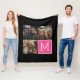 Black and Pink Trendy Photo Collage with Monogram Fleece Blanket