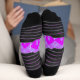 Put on these bright black and purple athletic socks for a cheerful look. You can wear them at home or wear them when you go outside - these are meant for every occasion - from hiking to exercise.
