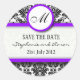 Black and Purple damask monogram wedding sticker which can be used as an invitation seal.