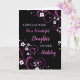 Birthday card for daughter with pretty black and purple flowers and thoughtful verse.