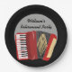 Whether you're honouring a special accordion player or hosting a polka-themed party these fun custom party plates are perfect for serving up tasty treats. They feature a hand drawn style illustration of a red accordion against a grey and black background with your text in black script lettering.