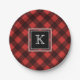 Black and Red Buffalo Check Custom Monogram Paper Plate