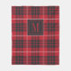 Black and red buffalo plaid pattern monogram fleece blanket