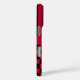 Customize this iPhone 16 pro case with black and red stripes on the top half and black and red checkered pattern on the bottom half with your name in a modern CAP font in the middle in black on red. It's preppy, trendy and bold - definitely cool!