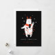 This adorable Christmas Card features a cute bear dressed in a cosy scarf with antlers, wrapped in festive lights. Set against a bold black background with cheerful red accents, this playful design is perfect for sending warm holiday wishes to loved ones. The minimalist and fun illustration adds a delightful touch to any holiday celebration.