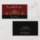 This business card design is sure to attract attention and help you stand out in the crowd. The background is black at the bottom with a red damask pattern at the top. There is a beautiful gold scroll embellishment where the two colours meet. Perfect for any business but especially great for bridal salon, wedding planning, event planning, catering, nail salon, spa, jewellery, cosmetologist, fashion, beauty consultant, or any time you would like an elegant touch. Add your information and it is ready to go!