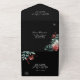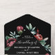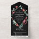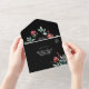 This Inspired Black and Floral Moody Passion Wedding with all in one Wedding invitations that include the wedding info and RSVP postcard that your guests tear off and and send. An inspiring combination of rich red and burgundy roses complemented by green foliage and a classic elegant black background. This passion, bright and stylish design will be a hit with all of your guests! Change the text and background colour by clicking on the "customise" button. Personalise the information by clicking the "details" button.