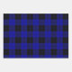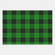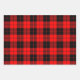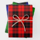 A wrapping paper sheet set with a plaid pattern in black on three background colours, red, green and blue. Customise the background colours, pattern sizes among other options.