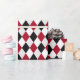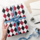 Bold black and red harlequin diamond-patterned wrapping paper.