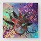 BLACK AND RED JESTER MASK Blue Masquerade Party Square Wall Clock