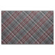 A plaid pattern of lines in shades of red, black grey and white with a hint of dark blue, in diagonal striped checks or tartan.