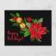 Elegant, simple illustration of Christmas-y poinsettia, in brilliant red on a black background.