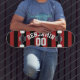 Black and Red Rugby Jersey Stripes Name Number Skateboard