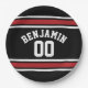 Black and Red Sports Jersey Custom Name Number Paper Plate