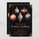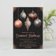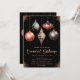 Host a festive and stylish ornament exchange with this luxurious black and rose gold invitation. This design features a rich black background adorned with shimmering rose gold accents and five intricately illustrated hanging ornaments, each showcasing floral, snowflake and geometric patterns. This elegant layout sets the tone for a warm and celebratory seasonal gathering. Perfect for holiday swaps, office events or cozy get-togethers with friends and family.