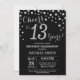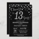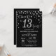 13th Birthday Invitation with Black and Silver Glitter Diamond Background. Silver Confetti. Kids Birthday. Boy or Girl Teen Teenage Lady Birthday. For further customisation, please click the "Customise it" button and use our design tool to modify this template.