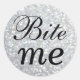 This super cute "bite me" sticker, makes a great accessory for any appetizer, dessert or food favour. The background of this sticker is a photo illustration and no real glitter is used.
