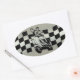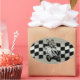 digitally drawn modern scooter boy and girl on a retro scooter with a wavy check pattern in the background, great gift for any scooter enthusiast or lover of sixties scooter culture