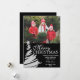 A modern holiday photo card featuring a silver Christmas tree topped with a star on a black background. This elegant Christmas card is perfect for a family or business. Easily personalize with your own photo and text! Other colors available. Designs are flat printed illustrations/graphics - NOT ACTUAL SILVER FOIL.