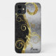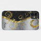Modern and elegant silver-grey and black floral damask and gold floral swirl. Optional monogram