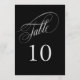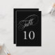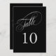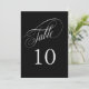 An elegant table number card in black with silver text featuring beautiful calligraphy script text. This design in the 5-inch by 7-inch size is a wonderful choice for weddings, banquets, dinners, luncheons, and parties that use black and silver in the colour scheme. To create table numbers for each table, personalise a single card for Table 1 and add to cart, then personalise a table card for Table 2 and add to cart, and so on until you have a card for each table.