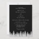 Capture the sleek elegance of a winter wedding with this black and silver invitation, perfect for a seasonal celebration. Featuring a rich black background and silver pine tree silhouettes, this invitation embodies modern sophistication for a winter wedding. Ideal for couples seeking a chic, contemporary aesthetic, it blends woodland charm with refined script typography for a polished touch. Whether you’re planning a glamourous winter soirée, a modern barn celebration, or a stylish forest-inspired event, this invitation beautifully sets the stage for a memorable winter wedding. This custom modern wedding design can easily be personalised with your own wedding details.