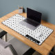 Embrace luxury with this Black & Silver Polka Dot Desk Mat. A stunning fusion of elegance and playfulness, this desk mat features shimmering purple dots on a crisp white backdrop. Elevate your workspace effortlessly with this chic accessory, adding a touch of glamour to any space. A perfect accent for a touch of sophistication in any room. Order yours now!