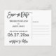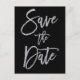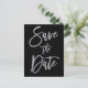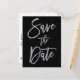 Black wedding Save the Dates postcards with silver glitter effect (faux, printed as an image) and custom text printed on white background
