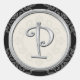 Black And Silver Wedding Monogram P Classic Round Sticker