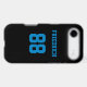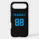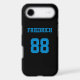 Add a name and number(s) to personalise this custom black and sky blue sports jersey inspired phone case. It is an excellent gift for a sports fan or athlete. The options to change the colour and font sizes are available.