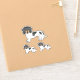 Destei's original cartoon illustration of a cute short hair black and tan piebald coat colour Dachshund breed dog. The design is placed three times on the sheet in two different sizes. There is one larger one and two smaller ones.