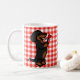 Unique and funny Dog Art painted by Naomi Ochiai from Japan. Cute and Funny Dachshund cartoon gift items for Dachshund fans!! An adorable Black and Tan Smooth Haired Doxie puppy is giving his/her tiny heart flower to his/her Mum. You can customise text and more! Red and white gingham plaid.