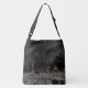 Crossbody tote bag printed with a gritty, grungy painting of the Venetian skyline featuring the famous bell tower of St. Mark's Square and the domes of Basilica San Marco. Rough grit and dry brush strokes in distressed tones of taupe and black produce a dark grunge texture. Transparent areas within the design allow your custom background colour to show through. Edit to create weathered Venice, Italy bags highlighted with your favourite colour. ♡ Idyllfire